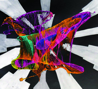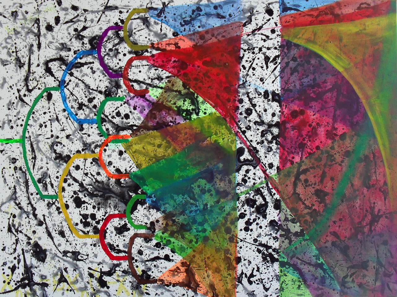 Two years later, as I was reflecting on my own life, I realized adaptation evolves over time as we blend in our own experiences with our inspirations. As a result, I combined my earlier sketches on Swan Lake with my personal performance in playing the evil wizard Rothbert. The struggle of emulating the characters combined with fights in my own life, with a little help from gravity created a fluid, biomorphic and somewhat psychedelic mixed media piece with dynamic composition.