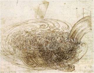 His interest in art and science were linked to each other, like two sides of the same coin. Figure 1 shows a drawing by Leonardo. It shows studies of the way water behaves when interrupted by foreign object and, at the bottom of the image, when falling from some height on to a pool. Here, the intention of the artist is not to draw a snapshot of a beautiful thing, it is to understand the way the current of water behaves. His tool for doing this is drawing. Interestingly, at that time fractals (self repeating units) were not known to the mathematicians. Neither did scientists understand the interaction of order (predictability) and chaos (unpredictability) in a complex system. However, Leonardo’s drawing and his notes clearly shows that he started to understand the behavior of complex systems using flow of water as an example (7).He studied human body as a complex systems and he drew many parts of it. Figure 2 shows his drawing, Vitruvian Man, where the proportion of human body was studied. Even today, artists practicing figure drawing, character designing and animation follow these simple rules of proportions of human body studied by Leonardo. As is the case today, imaging was in the forefront of scientific research at the time, and Leonardo was a leader in this field. Painting was only one of the many activities in which he excelled. We only know approximately thirteen paintings by Leonardo, depending on whether we accept or not a few attributions in them, and several of these paintings are damage or unfinished. In spite of this he was enormously influential (5).