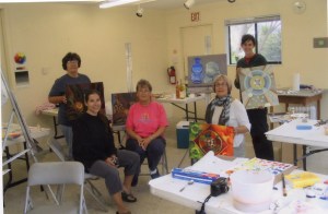| Figure 2: Caroline Shaw Ometz teaching her workshop at Mendocino, California in 2013 and inspiring her students to create their own stories, exploration and questions on life in painting. |