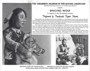 | Figure 1: Puppet show designed by Elisabeth Schalij at the Museum of American Indian in New York City where children interacted with the puppets created by Elisabeth as a mode of art communication. |